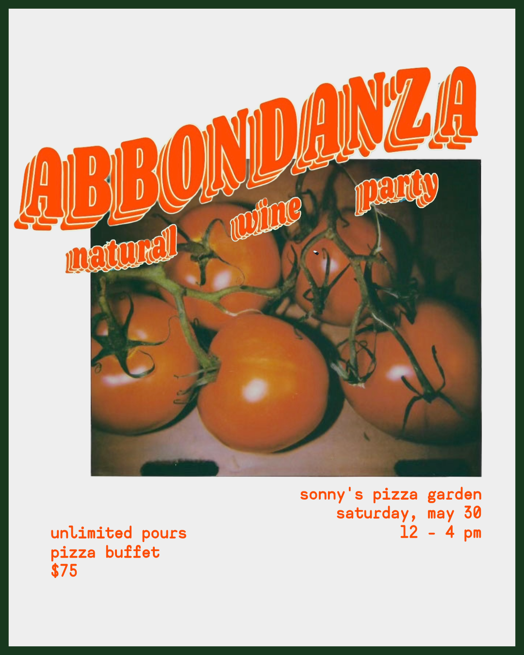 5.30.26 | 12 - 4 pm | sonny’s pizza garden | $75*