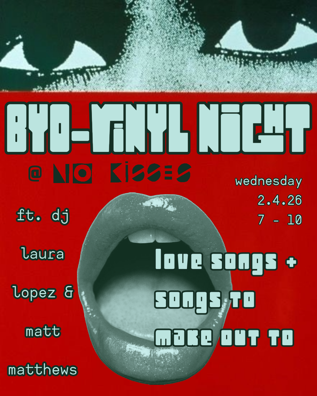 first wednesdays | 7-10 pm | no kisses | free